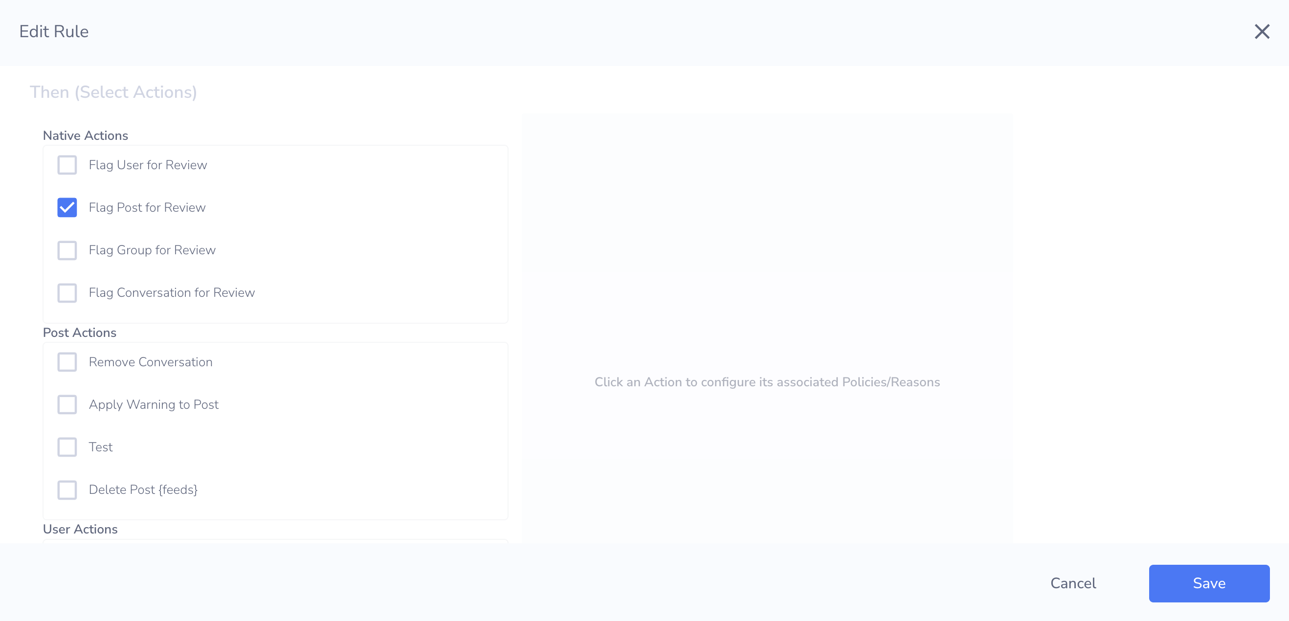 If you want to take action on all reports regardless of the report category, you can select āPost reported (any reason)ā.