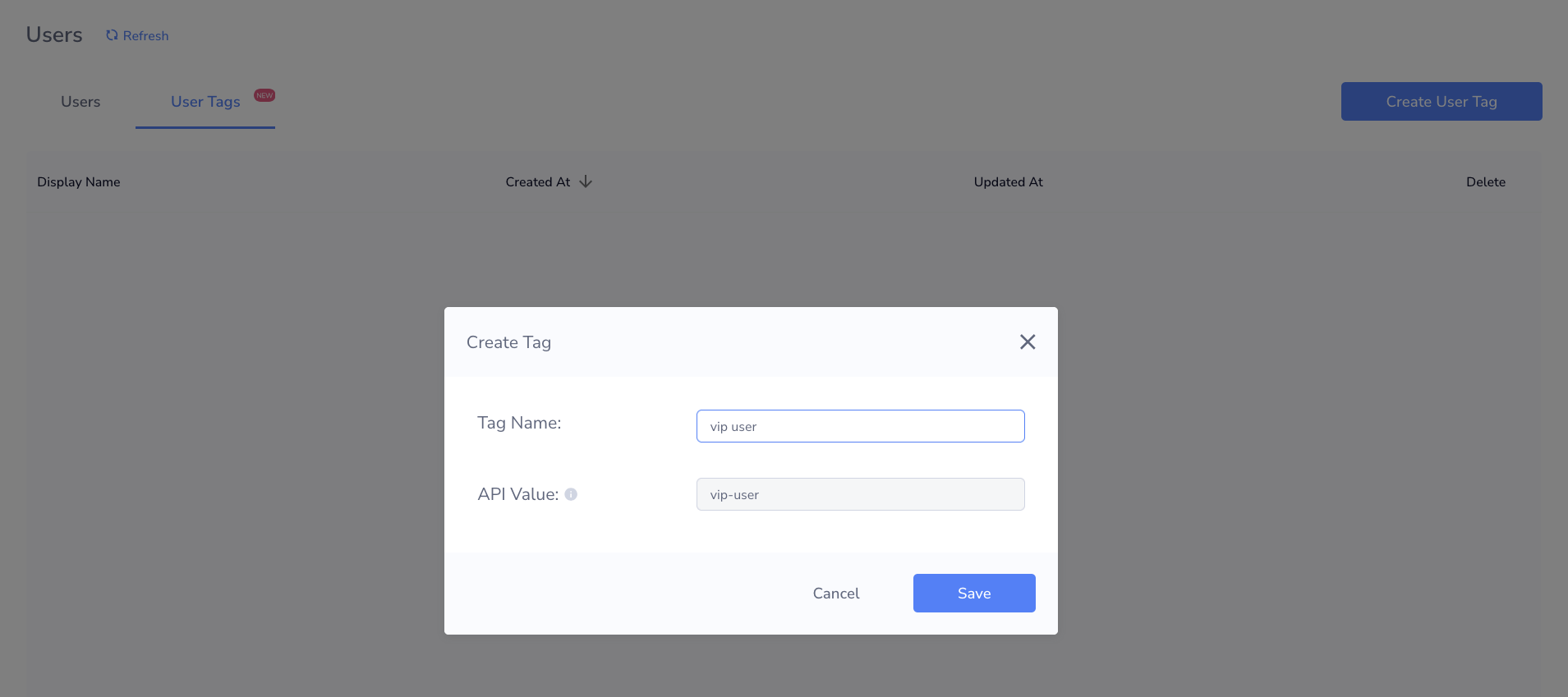 - Click Create User Tag.